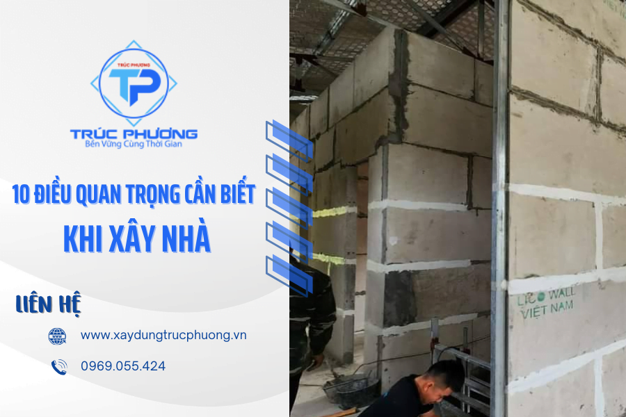 Xây nhà là một trong những chuyện lớn nhất của cả đời người. Do đó, việc xây nhà là cực kỳ quan trọng mà bạn cần phải chuẩn bị sẵn sàng trong mọi phương án. Muốn xây nhà cần chuẩn bị những gì để trong quá trình thi công được suôn sẻ, mang lại nhiều lợi ích và giá trị sử dụng? Trong bài viết dưới đây Xây Dựng Trúc Phương sẽ chia sẻ đến bạn đọc 10 điều quan trọng cần biết khi xây nhà để mọi người biết. Cùng theo dõi nhé!