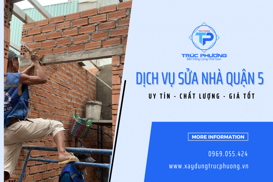 Dịch vụ sửa nhà quận 5 – Xây Dựng Trúc Phương chuyên nhận thi công sửa nhà, chúng tôi là một trong những đơn vị cung cấp dịch vụ sửa nhà uy tín, chuyên nghiệp, giá tốt hàng đầu tại TPHCM với đội ngũ công nhân thi công sửa chữa nhà chuyên nghiệp với hơn 10 năm kinh nghiệm thi công trong ngành xây dựng, chúng tôi tự tin đem đến cho bạn sự hài lòng cao nhất về chất lượng.